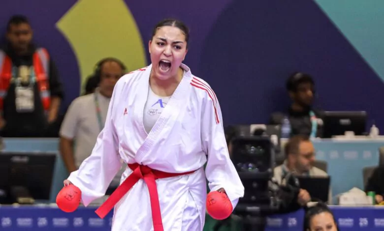 ومن جهتها اكتفت وفاء محجوب (اقل من 61 كلغ) في وقت سابق اليوم الاربعاء بالميدالية الفضية في منافسات الكاراتي (كوميتي) اثر هزيمتها امام اللاعبة الايرانية في الدور النهائي 4-7.
