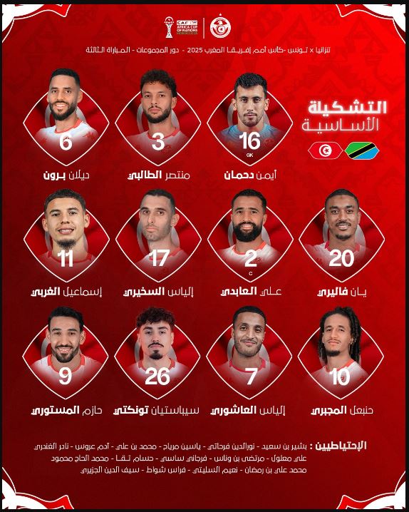 تشكيلة المنتخب التونسي أمام نظيره التنزاني