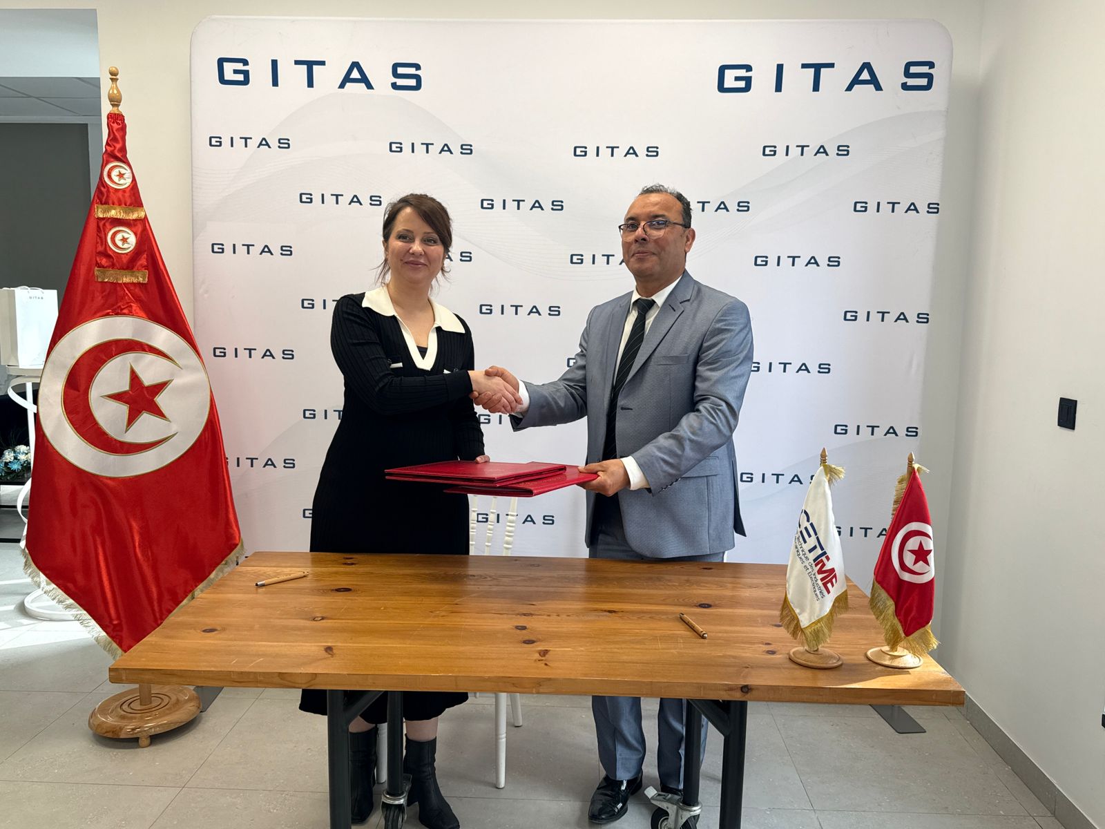 تولى إمضاء الاتفاقية كل من السيد نور الدين القيزاني (المدير العام للمركز التقني) والسيدة ستيفاني سنية الدلالي (رئيسة المجمع التونسي لصناعات الطيران والفضاء).
