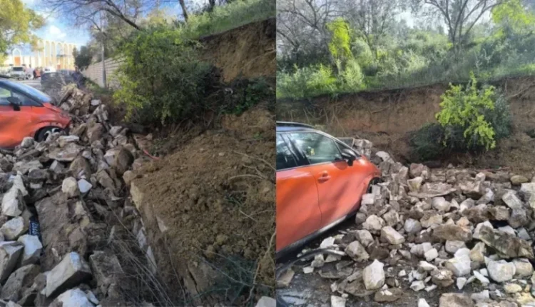 وأسفر الانهيار عن أضرار مادية مُتفاوتة في السيارات، دون تسجيل أيّ إصابات بشرية.
