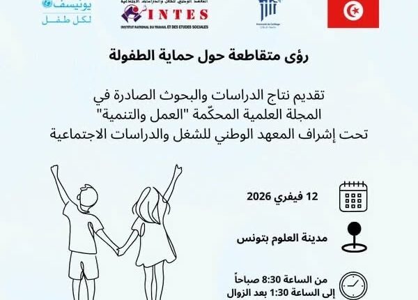 ينظم المعهد الوطني للشغل والدراسات الاجتماعية، بالتعاون مع مكتب منظمة “اليونيسف” بتونس، تظاهرة علمية يوم غدٍ الخميس 12 فيفري 2026 بمدينة العلوم بالعاصمة. وستخصص الفعالية لاستعراض مخرجات العدد الخاص من مجلة “العمل والتنمية” المتمحور حول قضايا حماية الطفولة.
