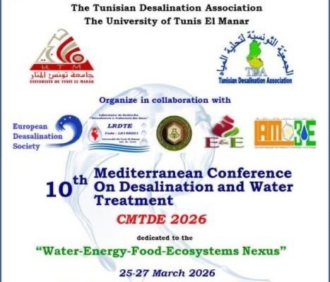 تنطلق بمدينة الحمامات، يوم الأربعاء 25 مارس 2026، أشغال الدورة العاشرة من “مؤتمر البحر الأبيض المتوسط لمعالجة المياه وتحليتها”، بتنظيم مشترك بين الجمعية التونسية لتحلية المياه وجامعة تونس المنار. ويهدف المؤتمر، الذي يمتد لثلاثة أيام، إلى استكشاف حلول مبتكرة لمشكلة نقص المياه عبر دمج الذكاء الاصطناعي والطاقة المتجددة في تقنيات التحلية. ويسعى المشاركون لوضع خارطة طريق تضمن الاكتفاء الذاتي الغذائي مع الالتزام الصارم بحماية المنظومة البيئية البحرية وتوطين تكنولوجيات التحلية الخضراء في تونس.